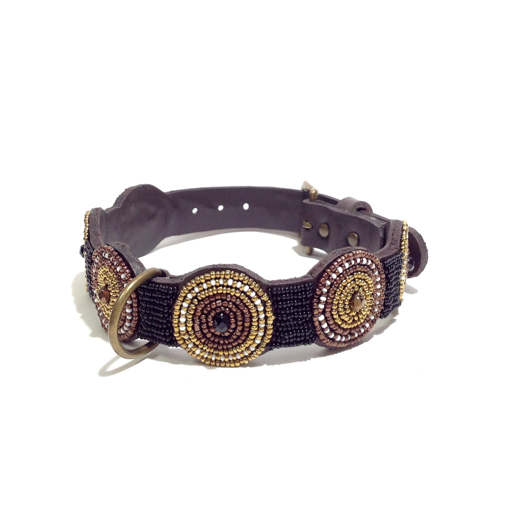 collare in cuoio ricamato a mano con perline di vetro e cristalli
